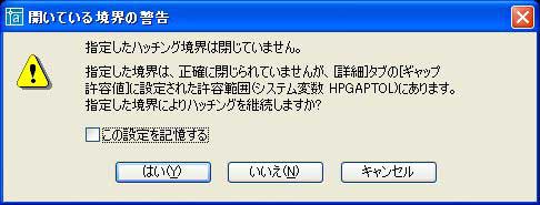 閉じてない範囲をハッチングしようとすると警告が出ます