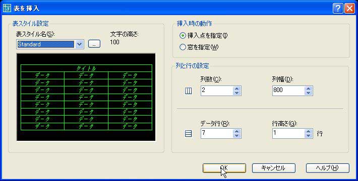 寸法スタイルと同じように、表スタイル管理により、作成される表のスタイルを規定できます。