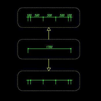 また、オプションで等分割モードを指定すると寸法をn等分して画き換えます。