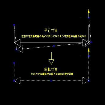平行寸法はストレッチをかけたときなど、寸法線の角度が変わってしまって不便なことがありますよね